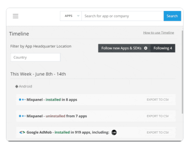 You want all the data, and you want it now. And since MightySignal has now joined forces with AppMonsta to bring you custom mobile data feeds, there's nothing standing in your way! Are you looking for app ranking stats? App publisher data? SDK intelligence? You choose the feed type and set your desired date range, and we'll capture that data snapshot for you to programmatically slice and dice your way. Import the data directly into your business intelligence tools, ETL platform, CRM, or any internal system you desire. Subscribe to multiple data feeds to compare and contrast various data sets from Google Play Store and Apple's App store. Or just build your own custom data feed package from the start. A monthly snapshot of either Google Play or Apple App store's public details and basic publisher data (publisher contact info not included). Query global parameters or drill down to get specific app details.