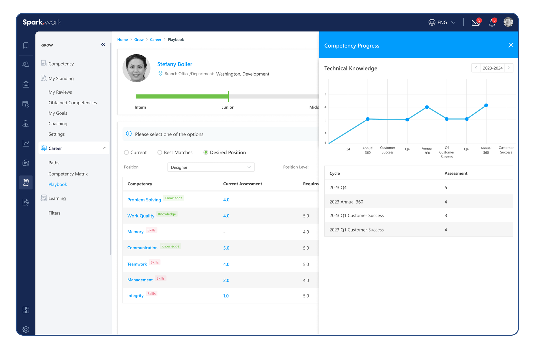 Spark.work is a platform that unites HR Management (HRMS) and Strategy Execution. Designed for growing companies, Spark helps leaders gain clarity and efficiency in people operations, then leverages that foundation to align and execute strategy across the organization.