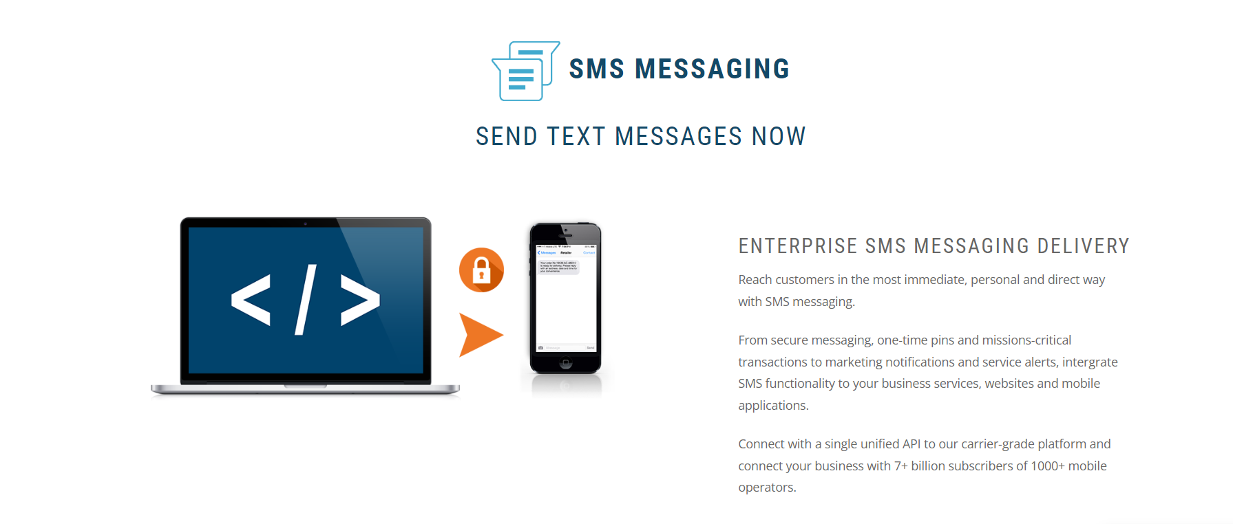 From secure messaging, one-time pins and missions-critical transactions to marketing notifications and service alerts, intergrate SMS functionality to your business services, websites and mobile applications.