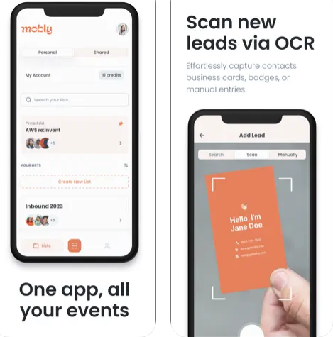 The only mobile sales tool that quickly scans and enriches leads, records contacts, and logs activity directly into your MAP or CRM. Mobly isn’t just another QR-code reader or badge scanner. Scan a badge, read a business card, enter a name, no matter how you meet someone, Mobly’s event-agnostic app creates a full lead in your CRM, instantly. A mobile app built for in-person networking. Scan or search anyone. Mobly will enrich the data and create a full contact for you immediately. All people you capture with Mobly are stored and sorted by where you met them. Mobly then pulls all relevant contact and social information into the profile using our own database, public data, our partners, and live humans. As soon as the show ends, just export your scans from their app and import them to Mobly. All of your in-person leads are kept in the same place. All are enriched with current contact info and social profiles. All synced with your CRM.