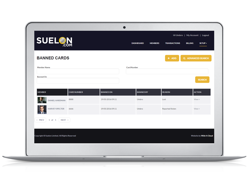 Each member has a secure login to their account. The password may be changed or updated at any time by the member. The member can view all Suleon Loyalty Cards held for any number of merchants. As the system grows it is envisaged that members will have many options when they can shop using the Suelon technology and receive significant loyalty benefits. A full card history is available to the member by simply logging in using the chosen secure password. Details on every transaction, with each merchant, is available along with the points accumulated from purchases, change added and the number of points redeemed.