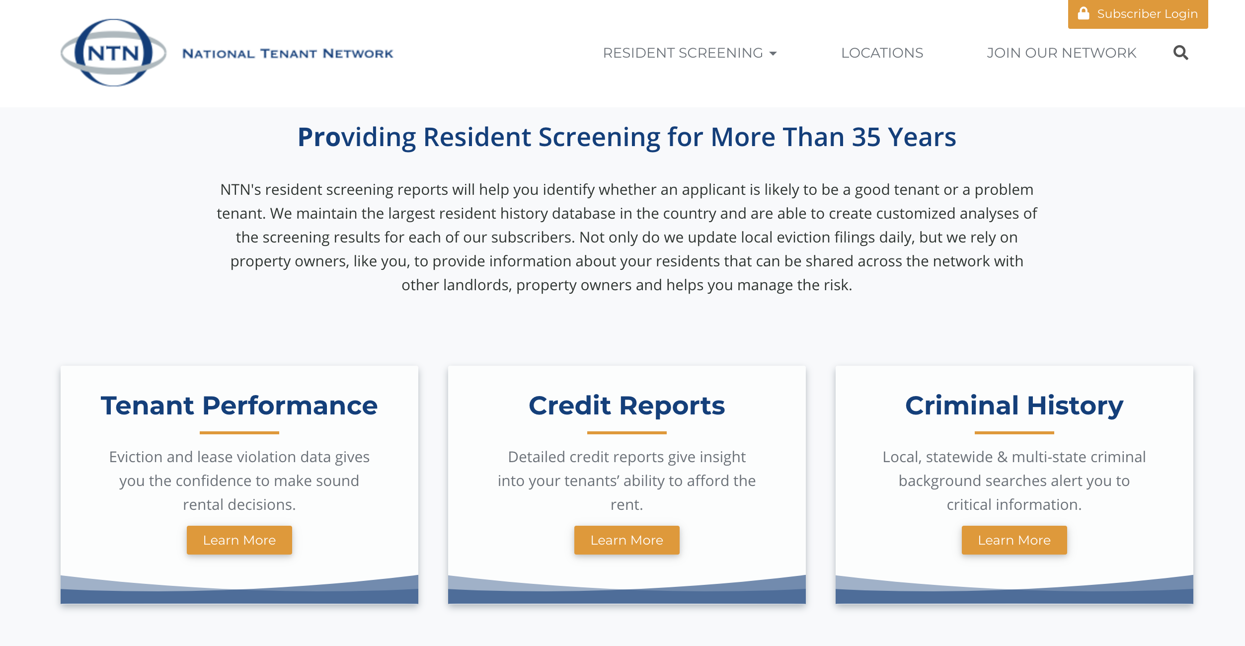 NTN's resident screening reports will help you identify whether an applicant is likely to be a good tenant or a problem tenant. We maintain the largest resident history database in the country and are able to create customized analyses of the screening results for each of our subscribers. Not only do we update local eviction filings daily, but we rely on property owners, like you, to provide information about your residents that can be shared across the network with other landlords, property owners and helps you manage the risk. Whether you manage one property or one thousand properties, NTN provides a simple solution that enables you to find the best possible tenant by making informed decisions. When you become an NTN® subscriber, you join other property owners and managers, just like you, who are saving money by avoiding property damage claims, loss of income, and eviction costs associated with high-risk tenants.