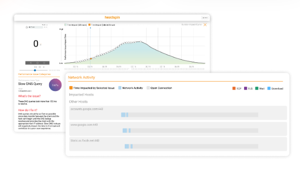 HeadSpin’s global device cloud enables mobile and browser testing on thousands of SIM-enabled devices deployed in 100+ locations on real carrier and WiFi networks around the globe. No emulation or simulation—ever. No SDK required. The HeadSpin Appliance provides a secure, portable, temperature-controlled enclosure for a wide variety of compatible devices, and allows RF access to the local WiFi or carrier network. Deploy on-prem, in the cloud, or anywhere. From code and packet analysis to machine learning and computer vision techniques that surface unique audio, video, voice, streaming, page content, MOS, and other quality of experience metrics, HeadSpin gives you the data and AI-powered insights you need to assure flawless digital experiences for your users. Delve deep into client-side performance to troubleshoot crashes, errors, SDK bloat, and system resource issues.