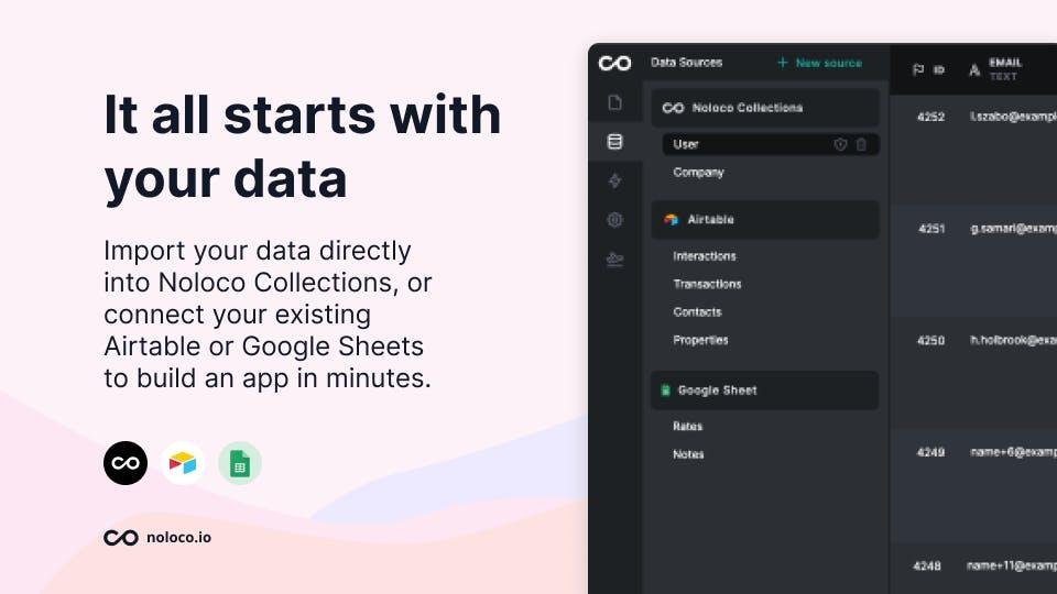Noloco is a no-code platform for teams to instantly create apps from their business data in spreadsheets and data sources like Airtable, PostgreSQL & Google Sheets.