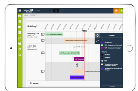 Simplify tenant coordination and communication for your commercial real estate projects. Automate manual processes. Collect rent sooner. Pay fewer penalties. Provide superior assessment and reporting for construction monitoring and inspection. Automate manual processes. Release construction draws faster. Reduce portfolio churn. Receive email notifications in regards to updates in your account, critical dates approaching, or in your deals comment section. No more chasing down your colleagues to get important contact or date information regarding a deal. Tenant Tracker gives you and your team a central collaboration to work together easily and efficiently. Upload copies of critical documents, site plans, photos and other items to properties, spaces, and deals. Then view them from anywhere on your laptop, iPad, or phone. Out of the box dashboarding based on GLA and individual spaces, ad hoc reporting capabilities, and custom configured PDF and Excel template exports.