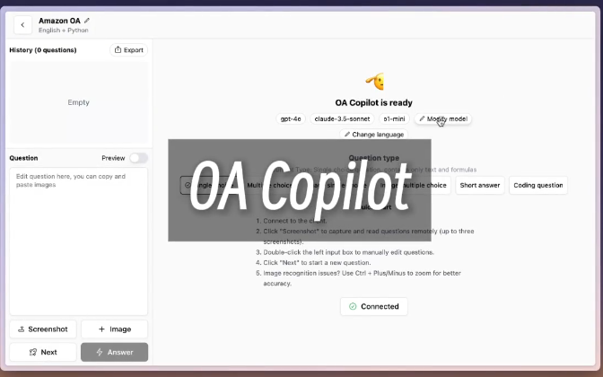 Offerin AI is an AI-powered interview and assessment assistant designed to enhance performance during job interviews. It offers features such as real-time speech recognition, rapid answer generation, and coding assistance to help candidates prepare effectively. While you interview, instant answers pop up on your phone, just read and nail it. Our AI listens in real time, pulls info from your resume and the latest online resources, and then gives you perfect answers in 1 second. Our coding copilot watches your screen, crafts complete solutions with complexity analysis and test cases, and then keeps optimizing based on your discussion. Offerin AI supports preparation for both virtual and in-person interviews. Our mock interviews and detailed feedback system can help users prepare for any type of interview. We also offer guidance on technical concepts and frameworks that candidates can integrate with their own knowledge to present a well-rounded response in in-person interviews.