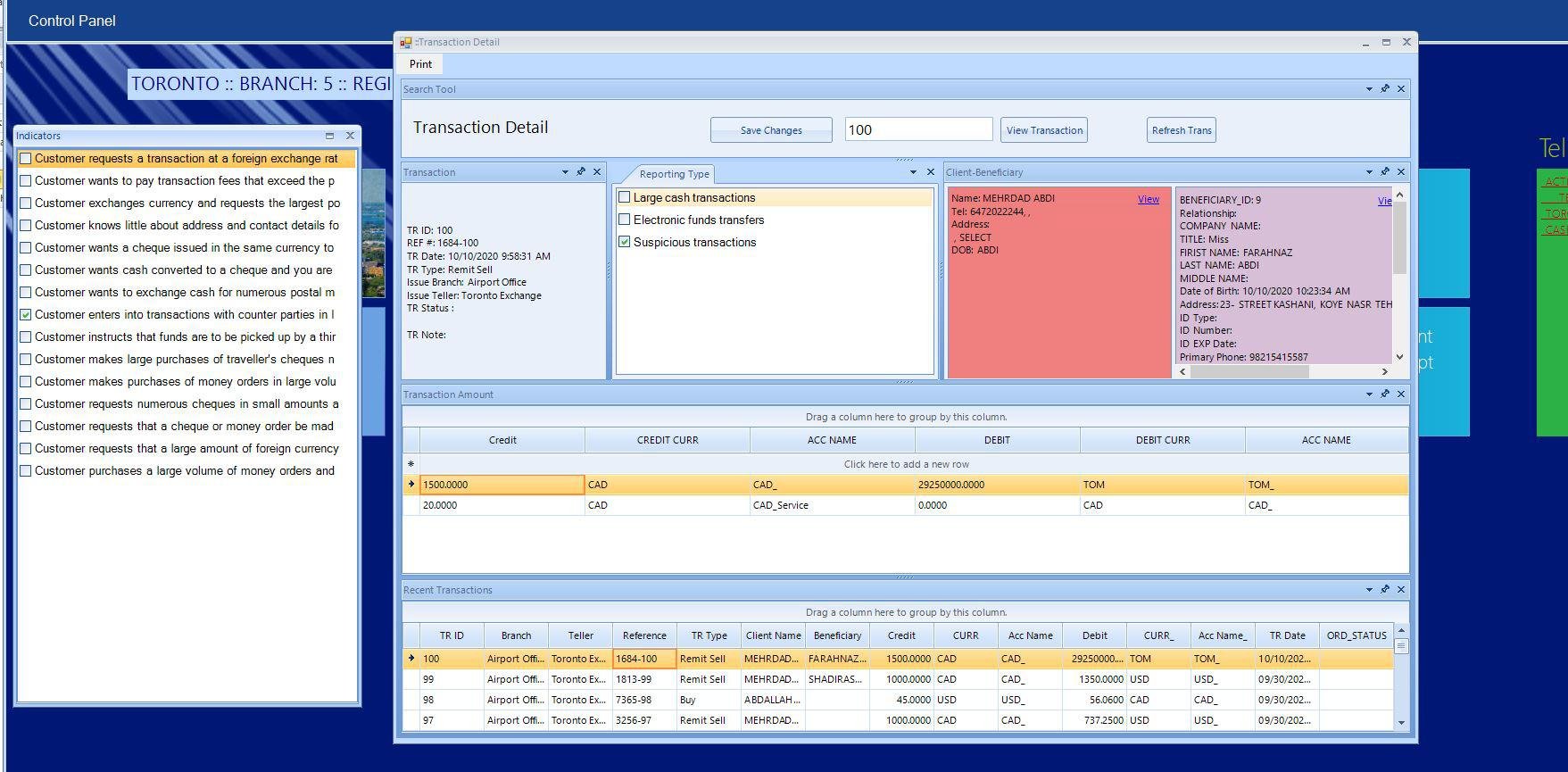 Office Exchange is the result of years of research and interviews with foreign exchange offices in Canada and other countries. It is very easy to use, reliable and can be customized to meet your business requirement. Buy and sell currencies with office exchange is very easy and fast. It allows you set rate from admin section and tellers in the system use the set rate for buy and sell. End of day report provide you with starting balance and closing balance for each teller. Each teller cashes in with starting balance and closes the cash with ability to transfer the closing balance to next teller. There are many reports to help you manage your day-to-day operation and we can add your customized report to the system with little or no cost. The system collects all required information for transactions. You can directly import client information from Passport and ID card using CGI Design Integrated API with scanner.