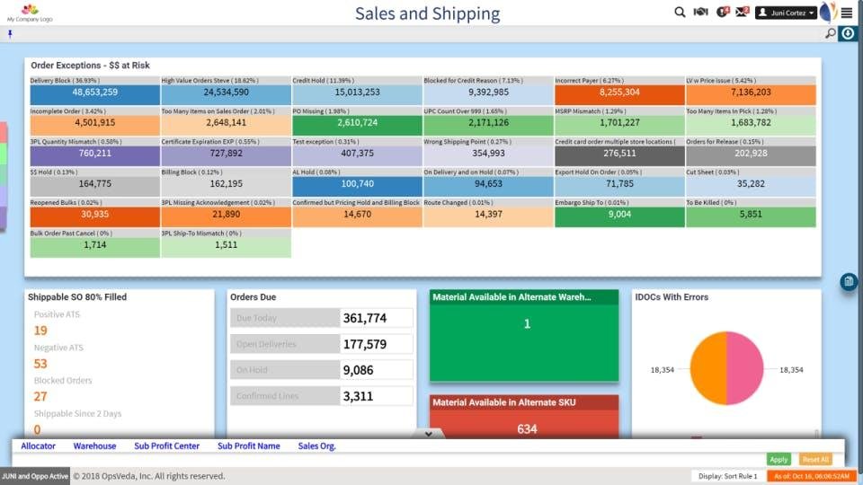 The OpsVeda Operations Management System is powered by an AI infused and automation capable platform. The platform uses algorithms and rules to monitor business events in real-time and alerts users to risks and opportunities in the context of customer relationships and financial outcomes. It is the engine powering the rich content of the OpsVeda Solution Factory. The platform enables a quick and low-risk way for companies to enjoy the benefits of an Operational Intelligence solution. The simple configuration enables ingestion from data lakes and reports, enabling users quickly with a range of insights, prescriptions & alerts. As needed, restful event-based real-time connectors can be deployed, as well as ready-made integration to pull-in data from third-party providers. Your data in OpsVeda is secured with up-to-date industry standards around user security and encryption at all stages. The system scales regardless of data volumes and provides elasticity needed during seasonal peaks.