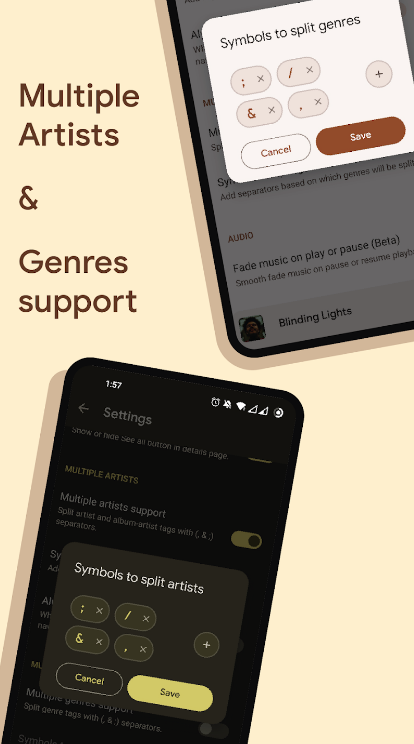 A material designed offline music player for android. Fade in/Fade out music when pause/resume playback. Download and edit lyrics from the app itself, change accent color and highlight color, light, dark, battery saver and system default theme support, download artist images, artist info and album info automatically, follows latest material design guidelines, gapless playback support.