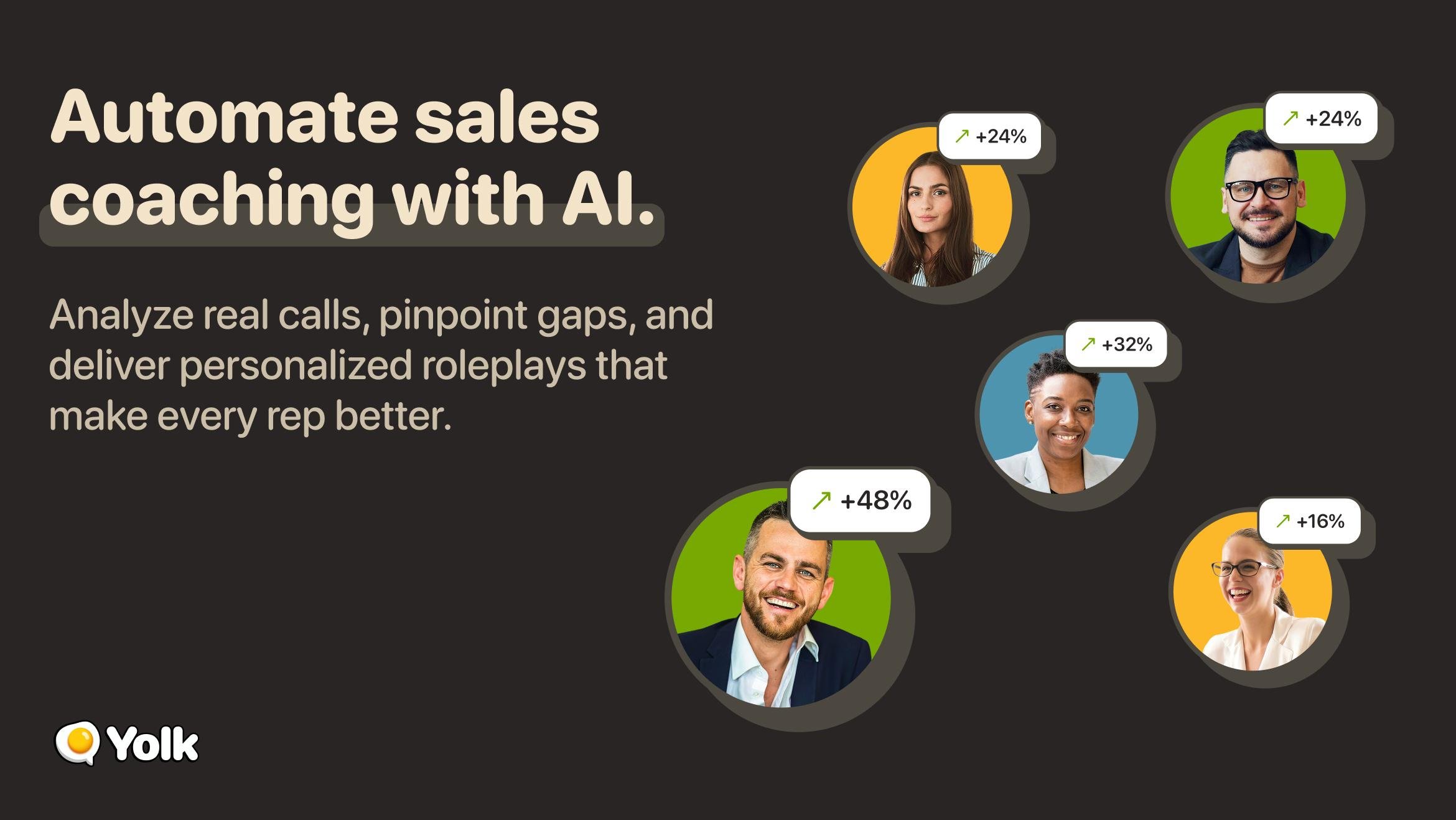 When gaps are identified, Yolk generates personalized, lifelike roleplays that mirror real buyer interactions. Reps practice with human-like AI avatars in low-stakes simulations and receive instant feedback and actionable guidance after every session. This continuous loop of analysis → practice → feedback improves consistency, accelerates ramp, and scales coaching without adding headcount.