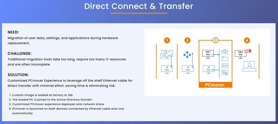 Enterprises and large organizations can save over 60% on both hard and soft costs when using PCmover®. It's Microsoft's only recommended migration solution that can be used for all types of transfer scenarios - break/fix, ongoing PC and OS refreshes for any size network.