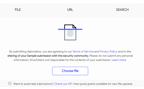 VirusTotal inspects items with over 70 antivirus scanners and URL/domain blocklisting services, in addition to a myriad of tools to extract signals from the studied content. Any user can select a file from their computer using their browser and send it to VirusTotal. VirusTotal offers a number of file submission methods, including the primary public web interface, desktop uploaders, browser extensions and a programmatic API. The web interface has the highest scanning priority among the publicly available submission methods. Submissions may be scripted in any programming language using the HTTP-based public API. VirusTotal can be useful in detecting malicious content and also in identifying false positives, normal and harmless items detected as malicious by one or more scanners. As with files, URLs can be submitted via several different means including the VirusTotal webpage, browser extensions and the API.