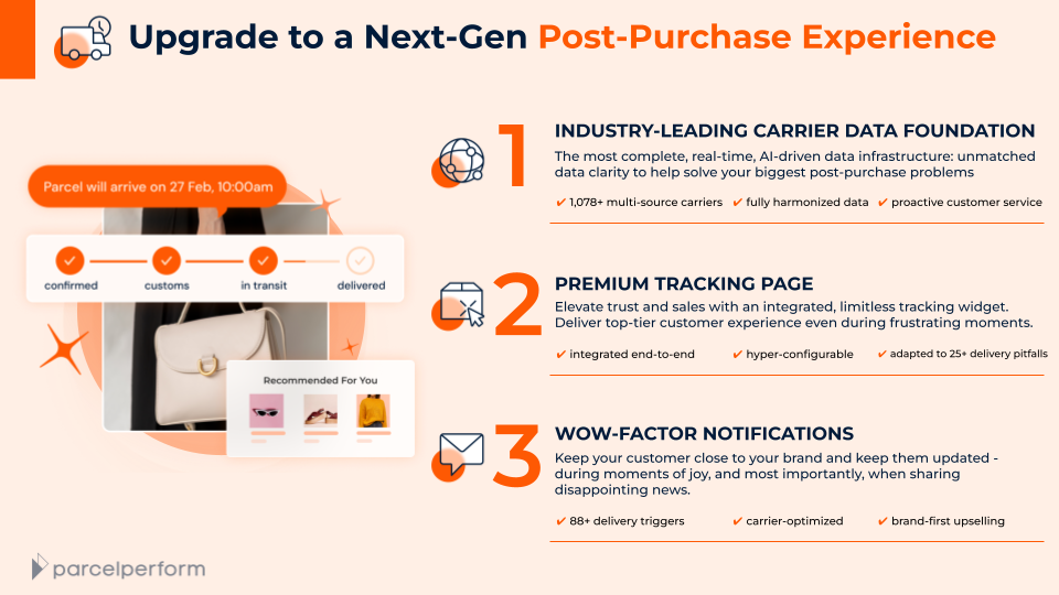 Parcel Perform is the next-generation E-Commerce Data & Delivery Experience Platform that pushes beyond traditional post-purchase boundaries. We empower businesses to streamline every stage of the e-commerce journey, from checkout to delivery and beyond, including returns, logistics operations, and data-driven management.