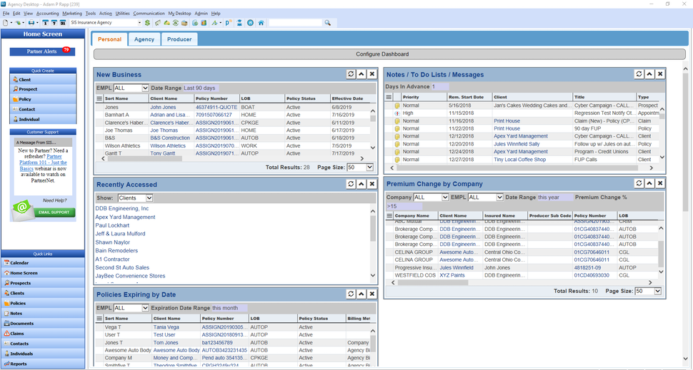 Easily manage the entire life-cycle of your agency’s client relationship from pre-sales to servicing to renewal in a unified system that has sales and marketing, client, policy, and financial management, agency-branded mobile app, integrated text messaging, data analytics, web solutions, and integrations with third-party tools and industry partners.