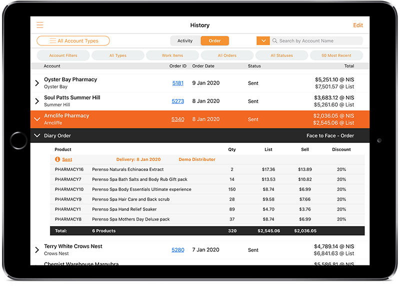 Perenso Field Sales provides a customizable and intuitive order screen to improve customer conversations and allow up-selling and quick order entry enabling your reps to sell better in the field.
