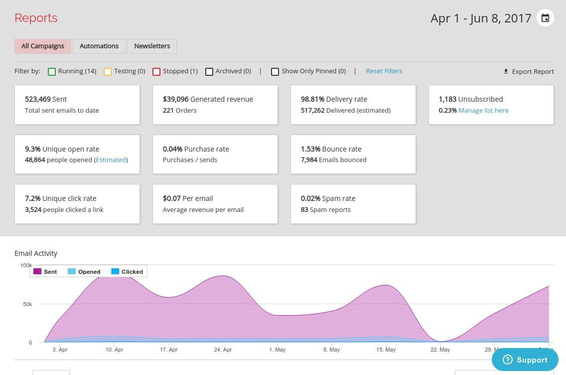 Armed with eCommerce analytics, you will be able to test, iterate and improve results. Remarkety’s dashboard shows you the full array of important metrics and KPI's needed for your success.