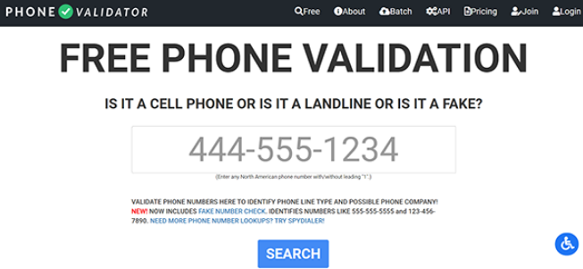 We are the experts for phone number lookups to determine phone line type. Do you need to know if phone numbers are mobile, landline, toll-free, VOIP, or fake/invalid? We cover all line types and all U.S phone companies. Run a phone number search above to see our uncanny accuracy. You can automate phone validator lookups with the phone validator API. Join the many app developers and marketing agencies who already use the API to keep their project phone numbers validated in real time. Our batch processing makes updating your phone lists easy. To run a phone number batch, just upload your CSV file and we'll do the work and email your file back.