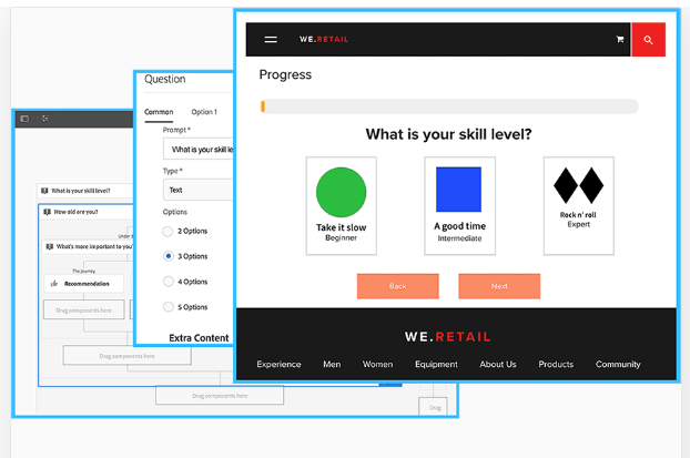 PiSrc Fütprint lets you create and publish dynamic questionnaires inside AEM to create unique experiences for your website visitors. Through a simple drag-and-drop interface, authors design insightful questionnaires that can lead users to product recommendations and relevant content. A progress bar indicates how far users have come, and a share/save feature lets them continue where they've left off. Questionnaires offer a light, voluntary, and gamified way for users to communicate their interests and preferences. Every answered question allows for self-curated segmentations o users can define what's important to them. Executed correctly, questionnaire responses can improve relevancy and build customer awareness. This information can also be used to pre-populate default settings on forms, rank sort content listings, and provide other unique touch points for future interactions. PiSrc can work with you to leverage AI and machine learning by analyzing data to tailor user experiences.