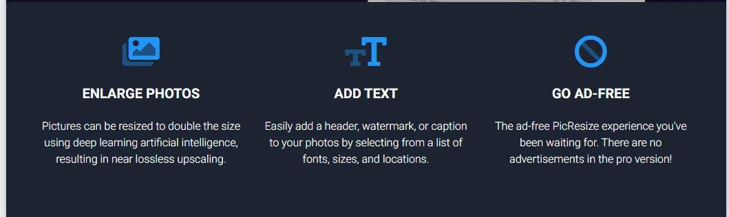 Easily crop, resize, and edit your images online for FREE at PicResize. 228,265,332 pictures served! PicResize.com was created in March 2005 and is the original picture editing tool on the Internet. The service has always remained free to use and has processed more than 150 million pictures since its launch. PicResize.com continues to be developed and improved with new features being added regularly. Take a look at the screenshots below to see how the web site has evolved over the years! We are proud to release an ad-free version of PicResize with new exclusive pro features! Become a founding member and help us shape the future of PicResize. Pictures can be resized to double the size using deep learning artificial intelligence, resulting in near lossless upscaling. Easily add a header, watermark, or caption to your photos by selecting from a list of fonts, sizes, and locations. The ad-free PicResize experience you've been waiting for. There are no advertisements in the pro version!