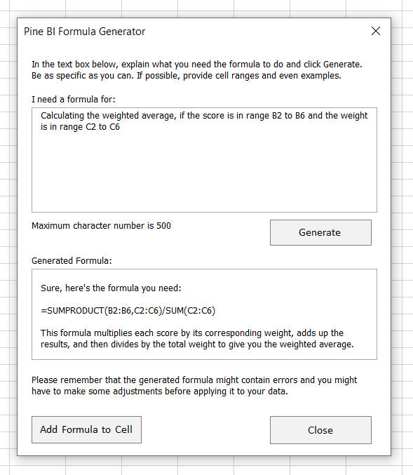 - Never again spend your day looking for the right formula or VBA code. Simply explain what you need and Pine AI will give you the solution.