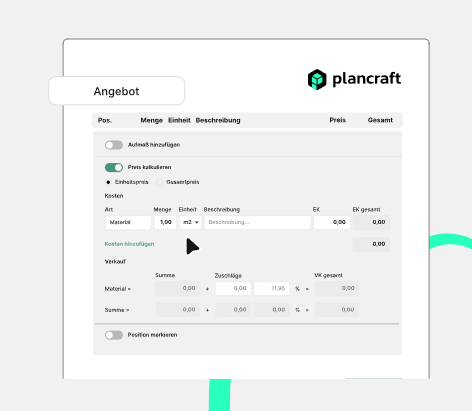 Plancraft is a cloud-based software designed to streamline office work for tradespeople, enabling the digitalization of every step from creating offers to time tracking. With its intuitive drag-and-drop functionality, users can create professional offers and invoices in just minutes, while seamless management of master data ensures efficiency. The planning board provides a complete overview of all job sites and employees, who can easily log their working hours and document tasks via the mobile app. Entered times flow into the project folder in real time through the cloud, ensuring everything is always in sight. Construction documentation and post-calculation features help users complete projects profitably, keeping profits in view through invoice lists and reminders. Quick invoice creation ensures customer satisfaction, and invoices can be effortlessly transferred to tax advisors via DATEV export.