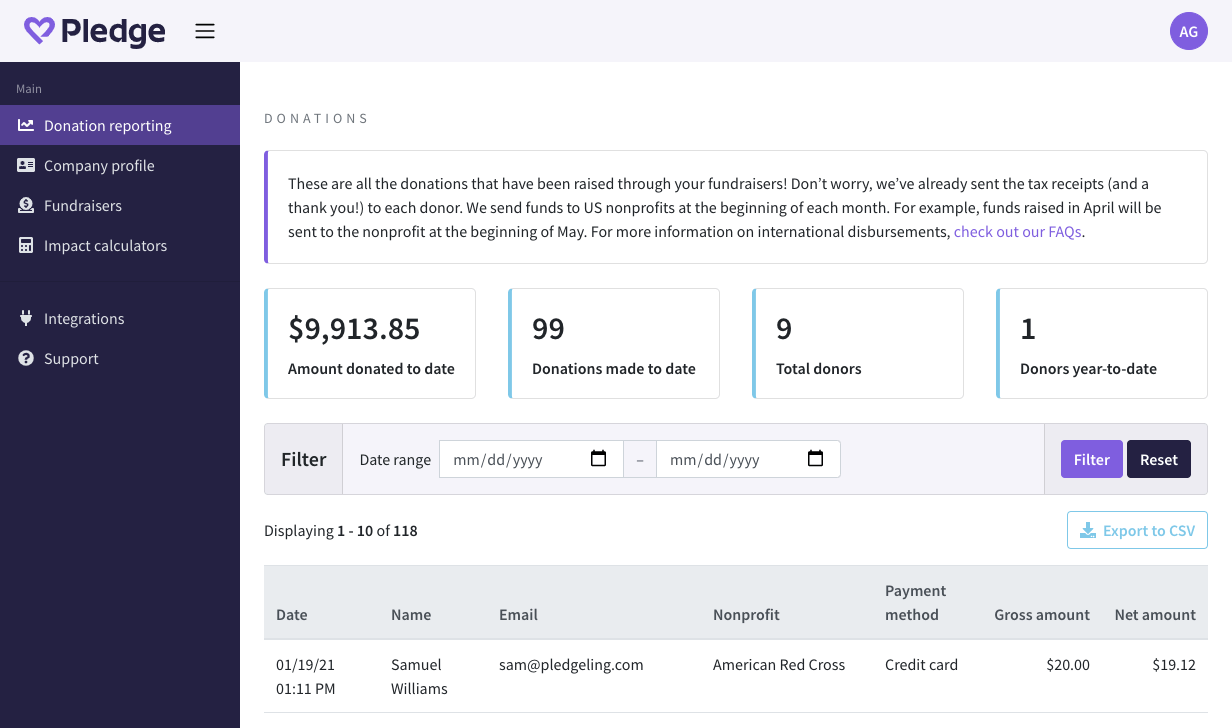 The donation platform for todayโs mission-driven companies, nonprofits, and people. Launch a fundraiser for your favorite cause in minutes, for Free. Inspire generosity in your next livestream event and support nonprofits around the world by using the worldโs first virtual camera app and donation overlay built for virtual fundraising. Free donation forms and fundraising pages for nonprofits, brands and community organizers. A transparent and accurate story of your fundraising efforts. The data is yours, forever. Build fundraising into your event platform through our APIs, or by contacting our team, or launch an event through some of our event partners. With our Shopify fundraising app, your online store can make a positive impact. Pledge empowers every organization to grow their business, engage their audiences, retain their customers, and increase their impact through frictionless charitable giving.