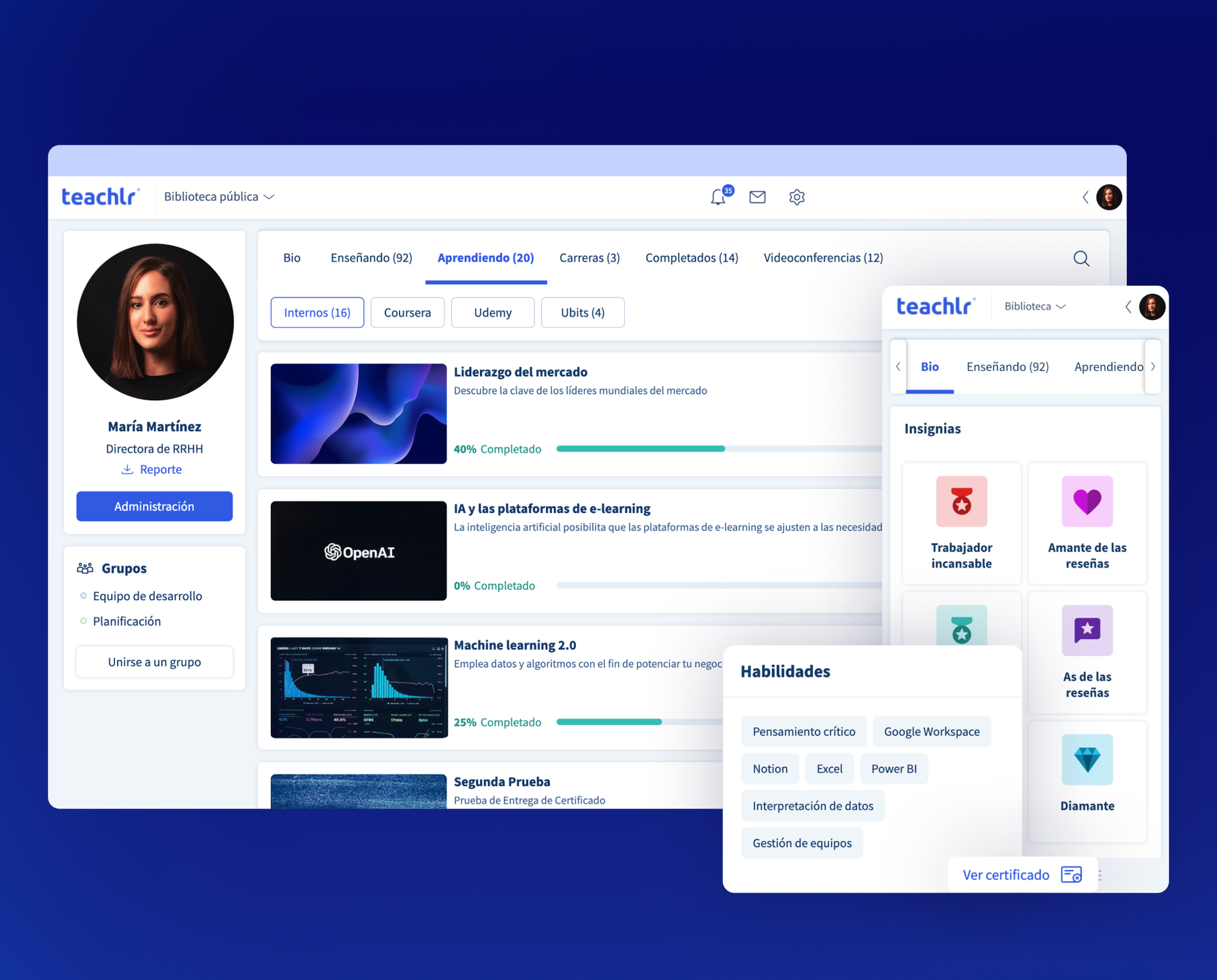 Teachlr Organizations is a comprehensive platform designed for internal corporate training and for institutions to sell courses and certifications. We offer an exceptional user experience in creating, managing, and monitoring learning programs. As the only learning hub that combines a catalog of free courses and partner offerings, Teachlr provides a unique synergy between a Learning Management System (LMS) and a Learning Experience Platform (LXP).