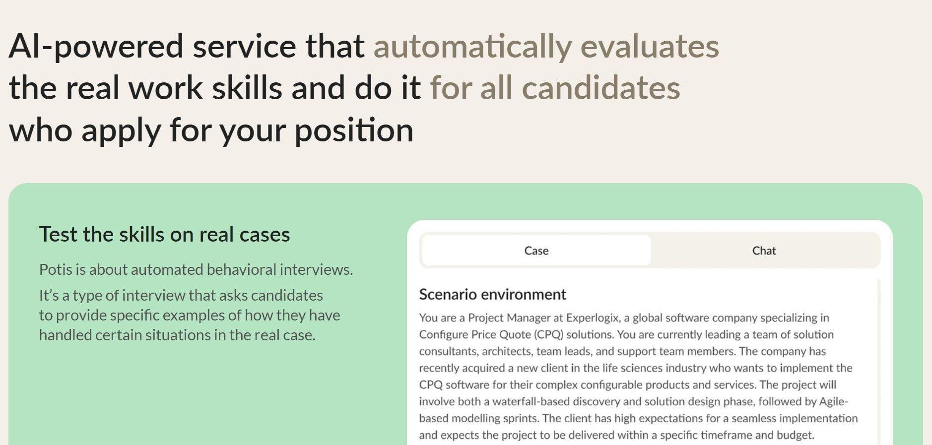 It’s a type of interview that asks candidates to provide specific examples of how they have handled certain situations in the real case. Cut all the daily routines like pre-screening calls and other worthless assessment processes. Potis automatically evaluates every candidate and highlights the best for job talents. Save up to 80% of the initial budget for hiring current and future positions. We can help to create more clearer, more equitable, and bias-free description, that attracts candidates and shows your company's strengths. Get a complete rating of all candidates with detailed scores for each candidate: indicating the skill tree, strengths, and weaknesses. Potis provides custom feedback, scores, and advice to every applicant based on their skills.
