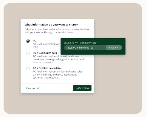 Automate operations, respond to market trends and access the capital necessary to thrive. Your business is valuable, protect it. Silo exists to help businesses build stability and nourish growth potential. We exist to help you thrive. With Silo, inventory, sales, accounting, reporting, and payments are automatically synced. If you're using third-party accounting, like everything we design, our fresh produce software makes integration easy. Our platform and customer service grow with your business. Whether you’re using QuickBooks or pen-and-paper, we’re here for you. Low implementation fees, continuous data backup, and free ongoing updates. Receive customer payments earlier than their terms. Typical produce industry software is static, resistant to change, and lacks the intuitive business tools necessary to thrive; we’ve changed that. Ensure profitability with automated expense linking. See your current inventory and lot details, in real-time.