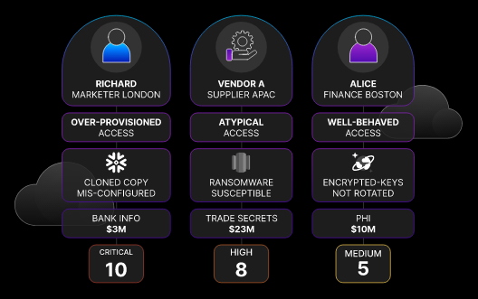 Theom is a cloud data security product that discovers and protects all data in cloud stores, APIs, and message queues. Like a bodyguard who closely follows and protects a high-value asset, Theom ensures controls follow the data regardless of how it is stored or accessed. Theom identifies PII, PHI, financial information, and trade secrets using agentless scanning and NLP classifiers, which support custom taxonomies. Theom discovers dark data, data that are never accessed, and shadow data, data whose security posture is different from the primary copy. Theom pinpoints confidential data, e.g., developer keys, in APIs and message queues. Theom estimates the financial value of data to help prioritize risks. Theom maps the relationships between data, access identities, and security attributes to uncover the risks to data. Theom shows how high-value data is accessed by identities (users and roles). Security attributes including user location, atypical access patterns, etc.