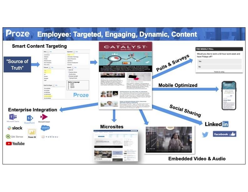 Proze is a cloud-based Internal Communications solution for sending rich newsletters and targeted content to employees based on their title, role, department and more. Offers deep integration with MS Office 365 applications such as Teams and Sharepoint (included Active Directory or Workday sync), and includes a simple drag-and-drop interface for easy email creation.