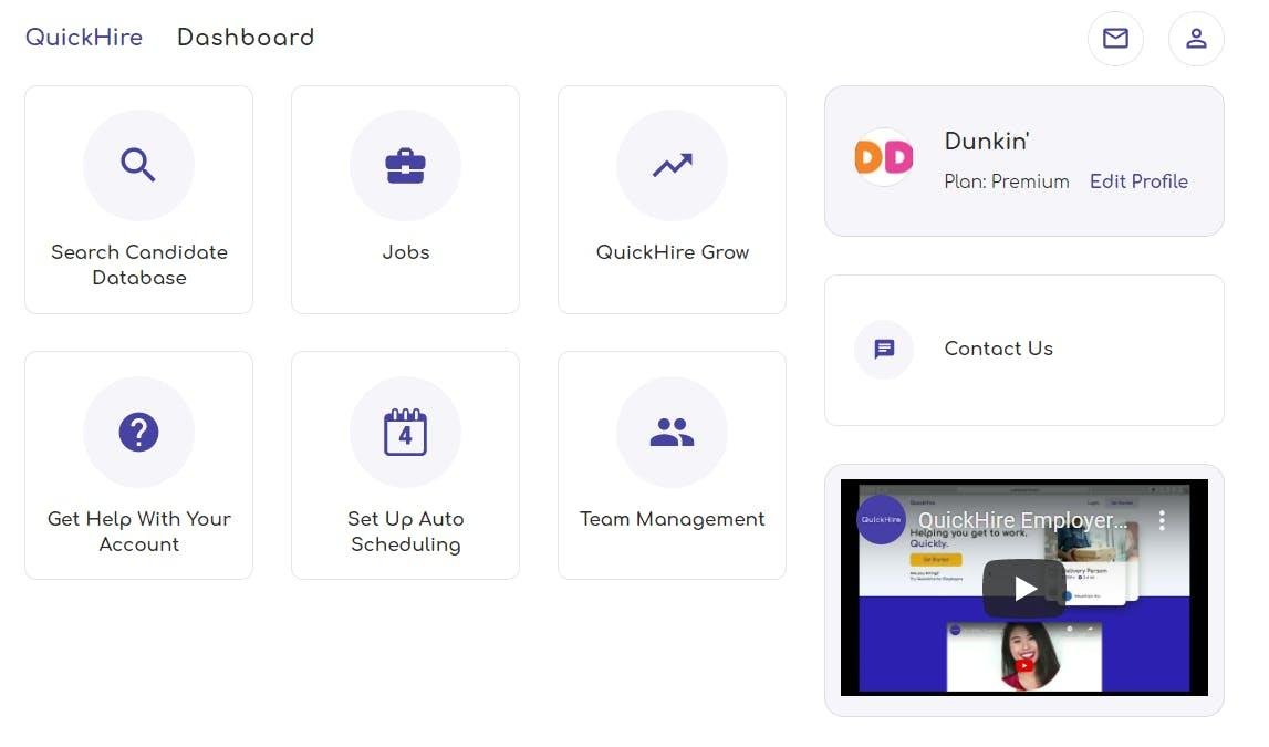 For our plans, employers get paired with a QuickHire Specialist who develops a custom recruitment dashboard that is tailored to their specific needs. We make it easy to post jobs, cross post to hundreds of job boards, and give your job seekers an accurate picture of what a role might look like with you. Easily view applicants on the dashboard. Our technology automatically screens every candidate and compares them against your qualification criteria. Access our pre-vetted community of job seekers and invite them to apply to your roles. Save profiles of specific candidates to review for your future positions. We're responsive and allow candidates to "swipe" to apply for jobs. Hire candidates on the go by accessing your profile from your mobile or tablet device.