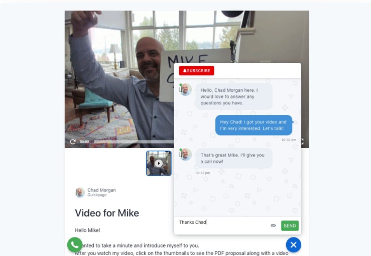 Quickpage is the fastest growing video follow up solution in the world. Set yourself apart from the competition and deliver the most unique experience your customer has ever seen. With Quickpage video email. Quickpage is your virtual solution to introducing yourself and your services in the most genuine way. Quickpage app was developed to bridge the gap between sales people and customers. It's a sales app that helps you create real, human relationships with your customer so that you can build trust and close deals. We want to help sales people stand out in their industry and for customers to have a better buying experience. We're a team of folks who think that communicating with video can truly change the way people do business and make it better. Virtual sales strategies are increasing and evolving rapidly as sales people quickly learn how to do it. Now is not the time to be left behind. Easily and quickly record or upload videos from your phone or desktop.
