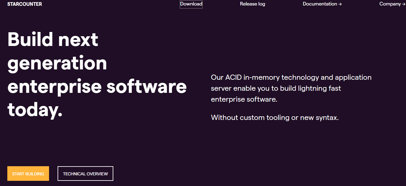 Our ACID in-memory technology and application server enable you to build lightning-fast enterprise software. Without custom tooling or new syntax. Starcounter applications let you achieve 50 to 1000 times better performance without adding complexity. Applications are written in regular C#, LINQ, and SQL. Even the ACID transactions are written in regular C# code. Full Visual Studio support including IntelliSense, debugger, and performance profiler. All the things you like, minus the headache. Write regular C# syntax with MVVM pattern to leverage ACID in-memory technology and thin client UI for extreme performance. Starcounter technology adds business value from day one. We leverage technology that’s already developed and in production, processing millions of business transactions for high-demand customers. Starcounter combines ACID in-memory database and application server into a single platform unmatched in performance, simplicity, and price.