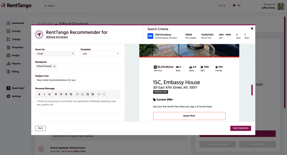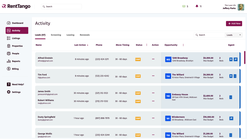 As a single stack solution, RentTango brings greater efficiency and visibility to your business. Our goal is to give you a competitive edge and the confidence to grow and expand. Our unique, leasing-specific deal flow provides greater visibility to every step of the deal. We keep your team and customers updated on the deal progress so everyone is aware exactly what the next step is and who is responsible which means deals close faster and smoother. While we incorporate cutting- edge technology like marketing automation and artificial intelligence, our goal is to support and help your agents, not replace them with robots. Made specifically for multifamily property managers and owner-operators, we are built to improve your company's business operations and give you the confidence to grow.