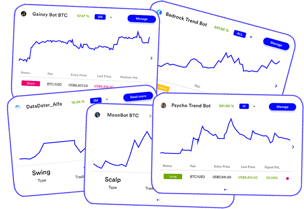 Stacked allows everyone to invest in crypto indices, access trading bots, and automate portfolio management. Crypto investing doesn't have to be complicated, so we un-complicated it. Not sure how to structure your crypto portfolio? Instantly allocate any percentage of your portfolio to a pre-built index of coins with just a few clicks. Get instant access several trading bots created by top traders. These bots open and close long and short positions on your favorite futures exchange. Our custom backtesting engine will show you the most profitable historical rebalancing strategy for any portfolio, and allow you to enable rebalancing instantly. We use encrypted API to send instructions to your exchange account to execute trades. No more logging into multiple exchanges, Stacked manages all your crypto on one, secure, platform. You keep your crypto on your favorite exchange. We never touch your assets and you have access to your stack at all times.