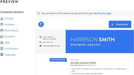 Zippia takes the worry out of the resume writing process with expert approved templates and examples from real resumes. Just answer a few questions and your professional resume will be done in minutes. We walk you step by step through the process of building a resume approved by certified resume writers. Answer quesitons about your work history, education, and skills and choose from existing bullet points from real resumes. Our customizable resume templates provide you the ability to express your expertise in a way that employers will notice right away. We have professional, modern, or creative styles that will fit your industry perfectly. Instantly download your resume in PDF (MS word and other formats will be available soon) as soon as you finish. Zippia's resume templates are Applicant Tracking System (ATS) compliant, so you'll get in front of recruiters faster.