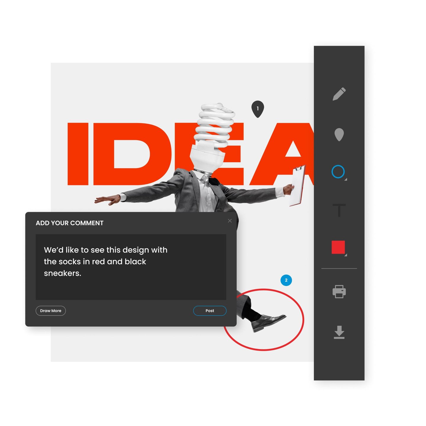Collaborators, reviewers and guests can easily markup and comment on imagery, video, web pages, PDFs and more.