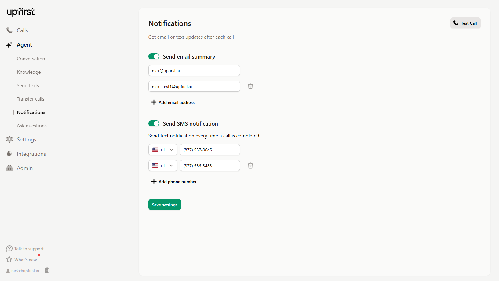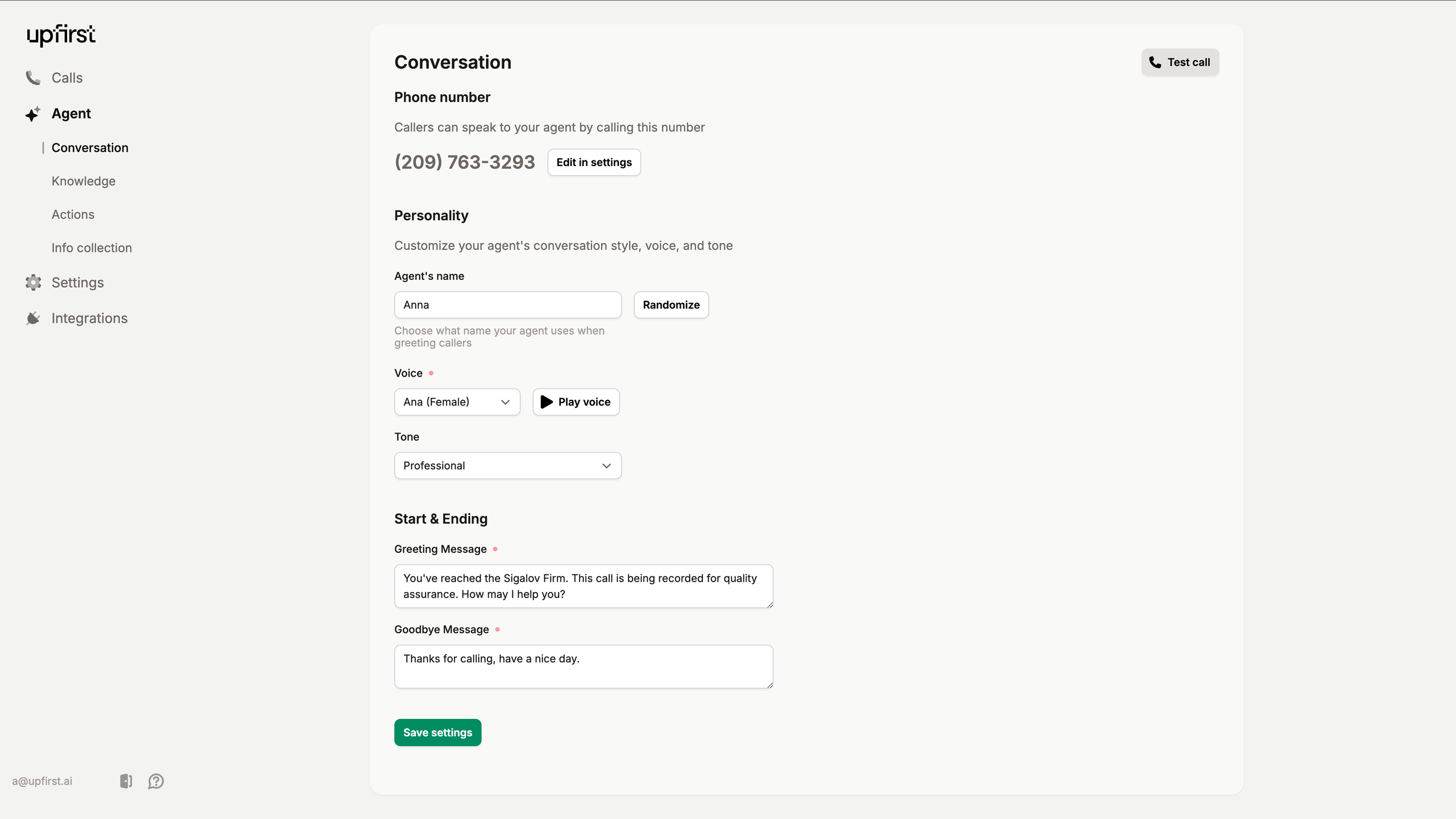 Upfirst helps small businesses answer calls around the clock so that callers never reach a voicemail. Businesses use our AI answering service to give callers an immediate human-like voice to answer questions, take messages, set appointments, and more.