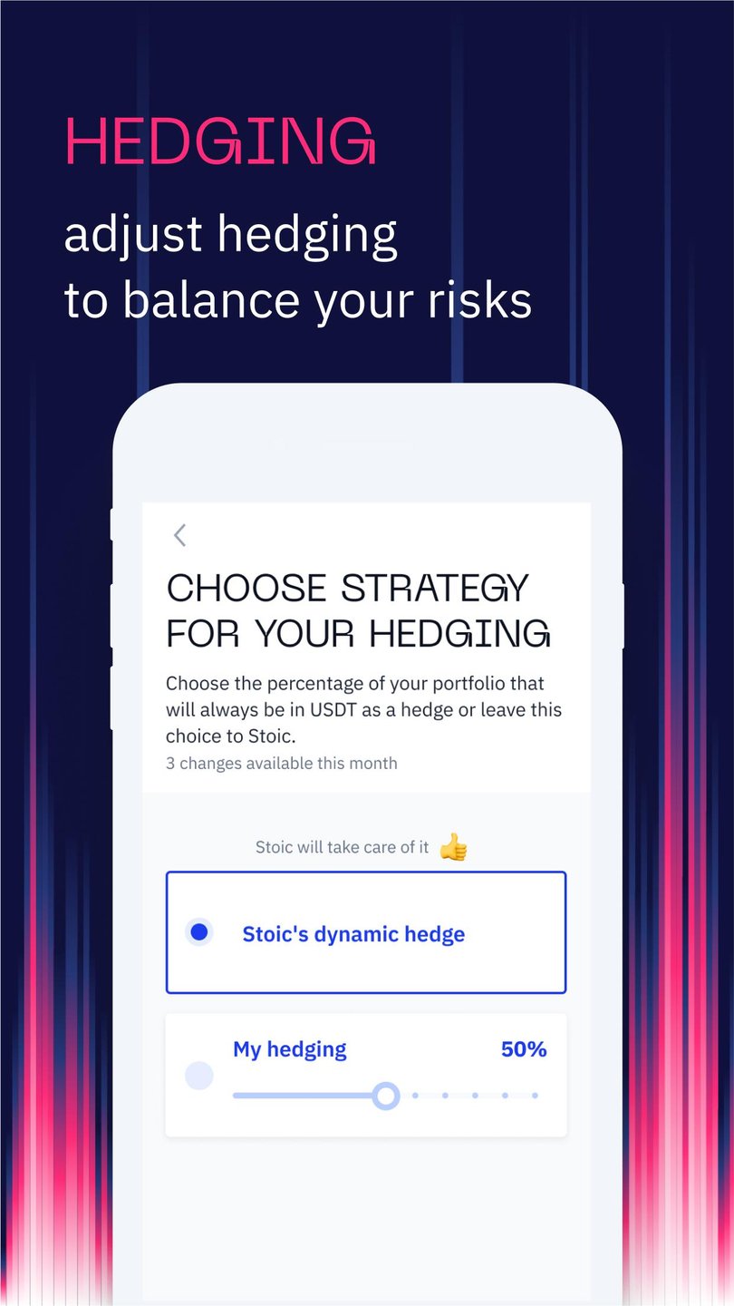 Best crypto trading bot with a hedge fund advantage. Controlling your emotions is the key to profitable trading. By automating your crypto investing with Stoic, you get rid of FOMO and FUD and gain regular rebalancing, well-tested hedge-fund-grade strategies, and a secure execution platform. Altcoins strategy from the hedge fund team. Developed by the team behind hedge fund Cindicator Capital, the strategy rebalances top-20 crypto assets taking into account forecasts from 156,000 analysts registered with Cindicator. 24/7 portfolio monitoring, withdrawals any time. Check your portfolio any time in the Stoic app. If you change your mind or want to take profits, you can immediately withdraw funds from your Binance account. No lockups, zero hassle. Market updates to keep you informed. On Mondays, you’ll get an easy-to-read update that explains in simple English the most important events in crypto. You’ll understand the market without following news 24/7.