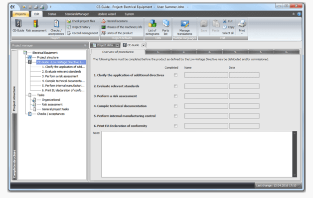 Safexpert is our thousand times proven software for CE marking and risk assessment according to the Machinery Directive and Machinery Regulation as well as the Low Voltage Directive. Safexpert has special modules which support you and your team in your safety related project management and in dealing with standards and EU directives. Professional safety engineering including modern standards management. Efficient work due to the direct access to particularly relevant standards in full text. The software functions of risk assessment form the core of Safexpert. They help you to create and document the legally required risk assessment efficiently, systematically, and legally compliant according to EN ISO 12100. In addition to the core functionalities of risk assessment, the software offers numerous features to make the risk assessment process as easy as possible for all parties involved.