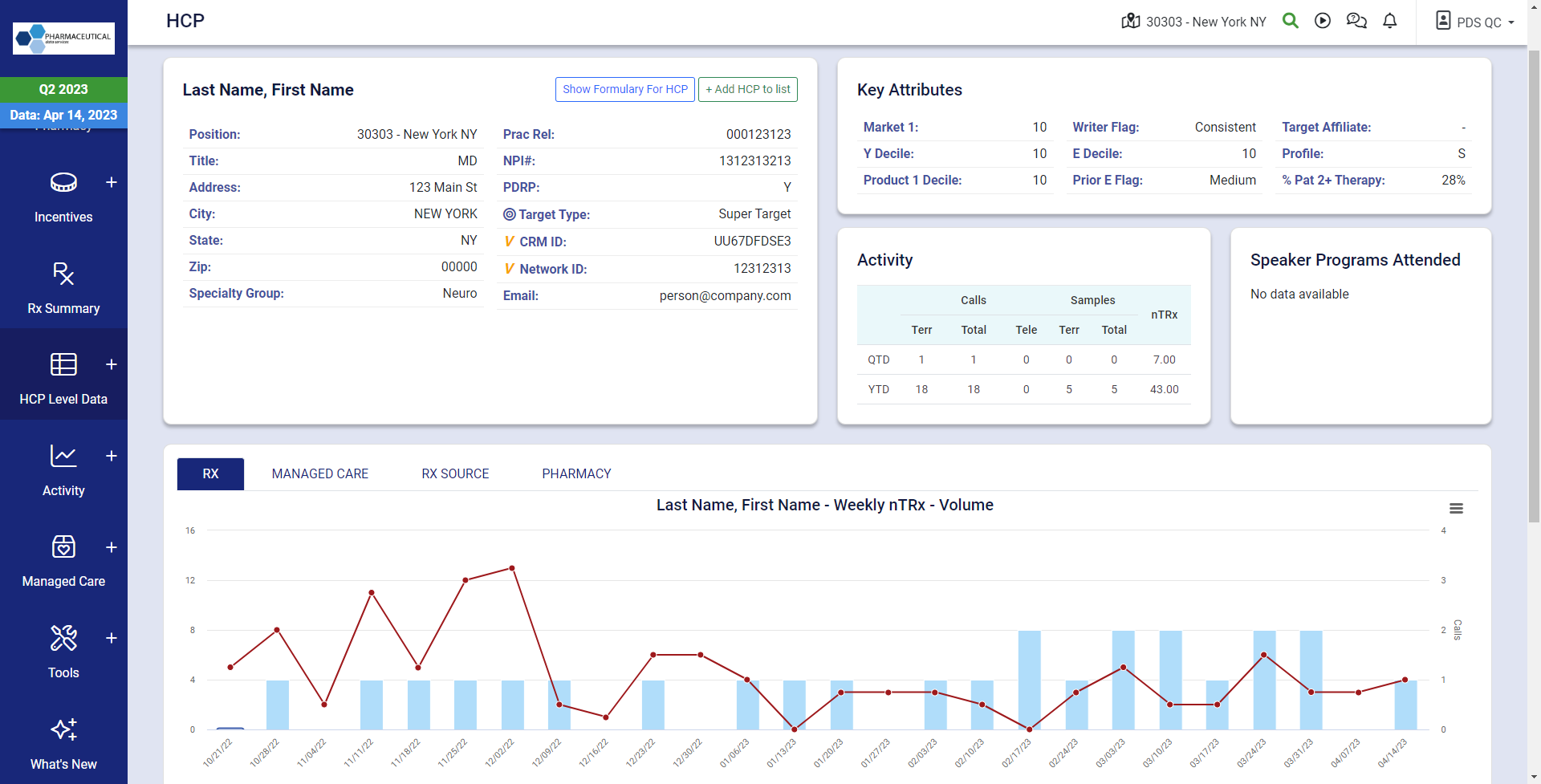 RxPulse’s customizable dashboard provides a comprehensive view of vital metrics such as prescriber information, sales history, competitor products, call activity, incentive compensation details, and more. Our platform is built to your specifications, and we offer pre-bucketed query fields to help you quickly find the information you need.