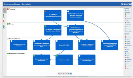 Interact Solutions has designed SA Performance Manager to provide greater efficiency and systematization in the strategic and operational planning process of your company. The integrated visualization of the results, through the strategic maps, performance indicators, and actions plans, allows differentiated monitoring of all the business perspectives, providing better performance and results more satisfactory. Make your strategy a continuous process and everyone's task. Informatization of strategic, operational, and organizational planning. Control and alignment of strategic and operational indicators. Management tools for the visual monitoring of indicators. Control of action plans and projects with schedule and workflow. Sophisticated management analysis tools. Integrated management of critical analysis events. Automatic communication system for personal agenda and messages. Online information on all the planning items. Exclusive and online presentations.