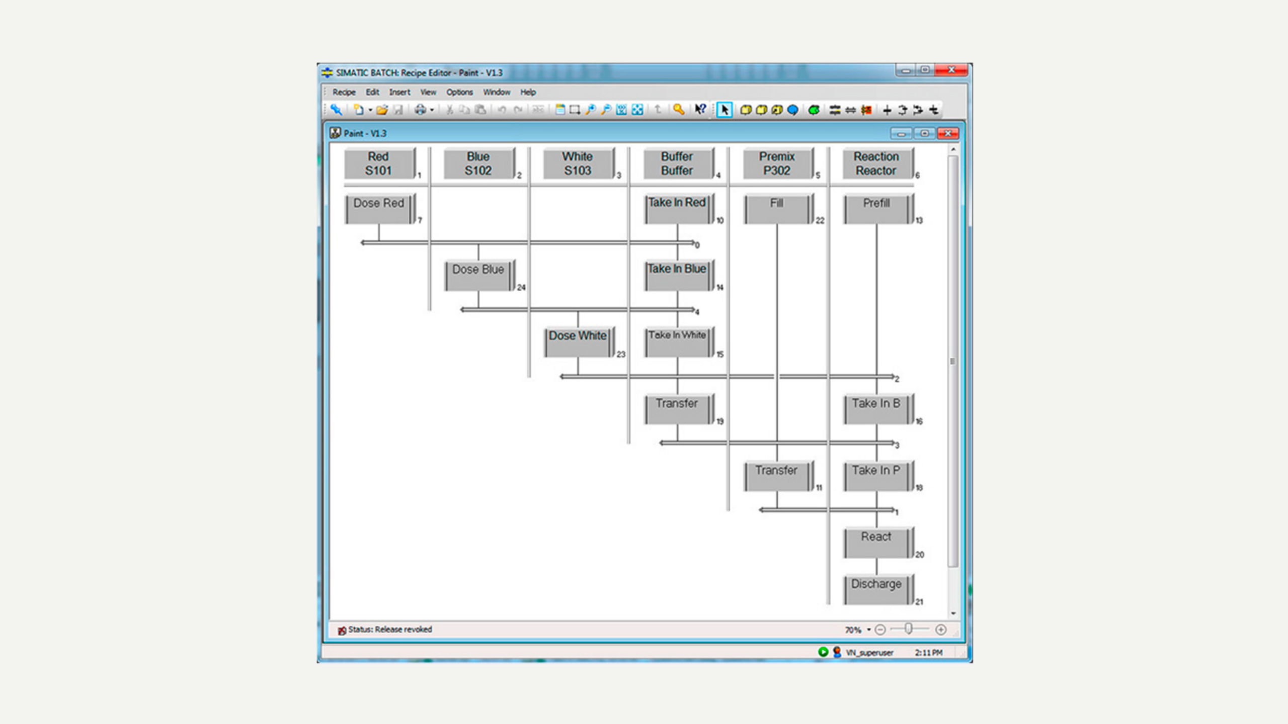 In addition to constant product quality and reproducibility of the process, other challenges also apply to batch processes: The market and consumers demand product diversity, product life cycles are becoming shorter, standards are being extended and the control requirements for traceability of production (FDA compliance) are becoming stricter. The SIMATIC PCS 7 process control system offers the right solution for all batch automation requirements and all market challenges. The SIMATIC BATCH software package works with recipe support and solves even highly complex tasks with changing control processes simply and flexibly. The SIMATIC BATCH Batch Control Center (BatchCC) is the central component for the administration, monitoring, and control of batch processes.