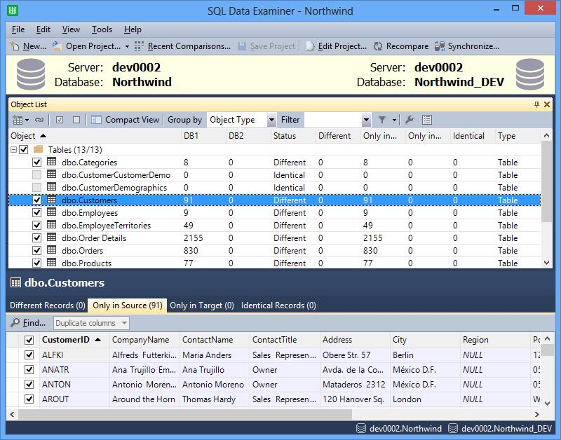 SQL Examiner Suite 2022 includes two award-winning products in one convenient package. SQL Examiner compares and synchronizes database schemas, while SQL Data Examiner performs the same task for actual data stored in databases. Learn more about database schema and data comparison. SQL Examiner Suite is a comprehensive solution performing fully automated comparison and synchronization of any two databases complete their structures and data. Databases in a variety of formats are supported, including all versions and editions of MS SQL Server from version 7.0 to 2019, PostgreSQL, SQL Azure Database, as well as most basic structures and objects of Oracle and MySQL databases. SQL Examiner fully supports all types of database objects found in MS SQL databases, and correctly synchronizes between different versions of MS SQL.