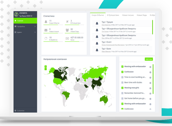 We are cloud system for the automation of any processes of any business. The platform is designed to automate processes that require high flexibility, speed of implementation of IT projects. ZOOMIA allows solving automation tasks of any complexity with or without any programming skills. Fill out the online registration form. Verify your email and phone number and get the online access to the platform. Review the tutorial video, how to start to work with platform. This is not a necessary step but it can help you. Start to configure the platform for the need of your company thru the support tickets or by activating the integrator panel. The main functionality will be activated, which you can use from the very beginning. All additional functional modules can be implemented in parallel. Automated workstations, cloud services, document management, accounting and much more are perfectly integrated into the business, regardless of how old the company is or in what niche it works!