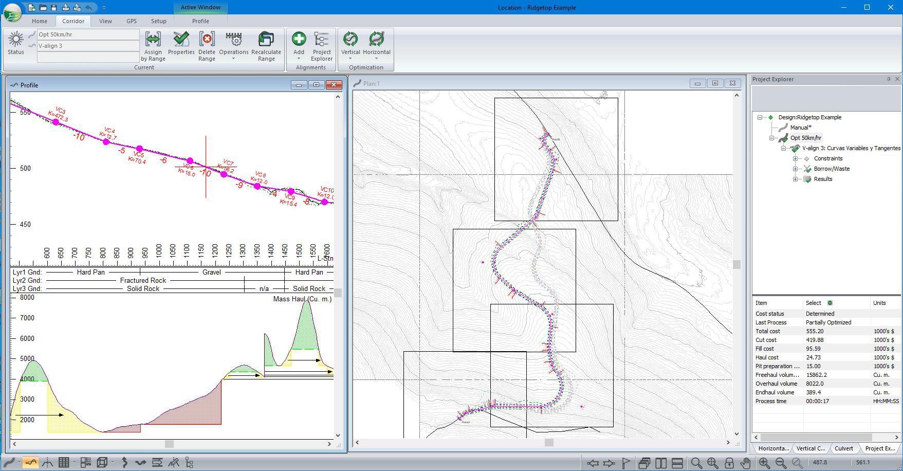 Design roads, highways, and corridors that cost less to build. Adding optimization software to your geometric design process allows you to deliver the lowest-cost design. It also allows you to design faster. Softree Optimal is a patented alignment optimization program. It can optimize an alignment vertically and horizontally. Generate the lowest cost vertical alignment based on the ground surface, the preliminary horizontal alignment, and the design parameters and constraints entered by the user. Utilize new horizontal alignment optimization functionality to further refine and improve your design. Consistently find the lowest-cost vertical alignment design that satisfies your design constraints & standards. Vertical optimization on its own typically brings down construction costs by 10-30% or more, depending on the project. Horizontally optimization works within a defined range of IP movement. Resulting improvements over 50% cost reduction are not uncommon.