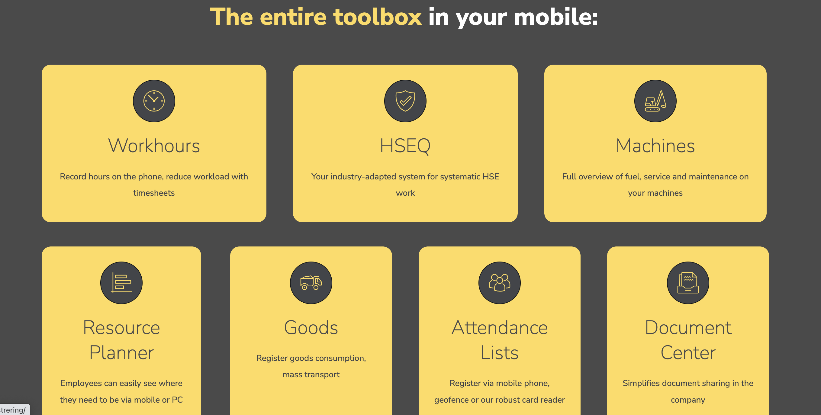 Focus on your core business and spend less time on administrative tasks. Work more efficiently and save up to several man-years. We simplify your HSEQ work and statutory requirements and ISO-certification. A correctly prepared invoice and salary basis saves contractors and their customers a lot of time and money. Get everything invoiced including the extra work. SmartDok has integrations and file exports to most financial systems on the market. Easy to run payroll, easy to invoice. Data capture in ‘real time’. The user-friendliness of the app increases the efficiency and quality of the hourly and product capture, as well as reduces waste. Why use multiple systems when you can have it all in one app? With SmartDok, you document, among other things, time registration, transport, HSE and deviations in one and the same app.