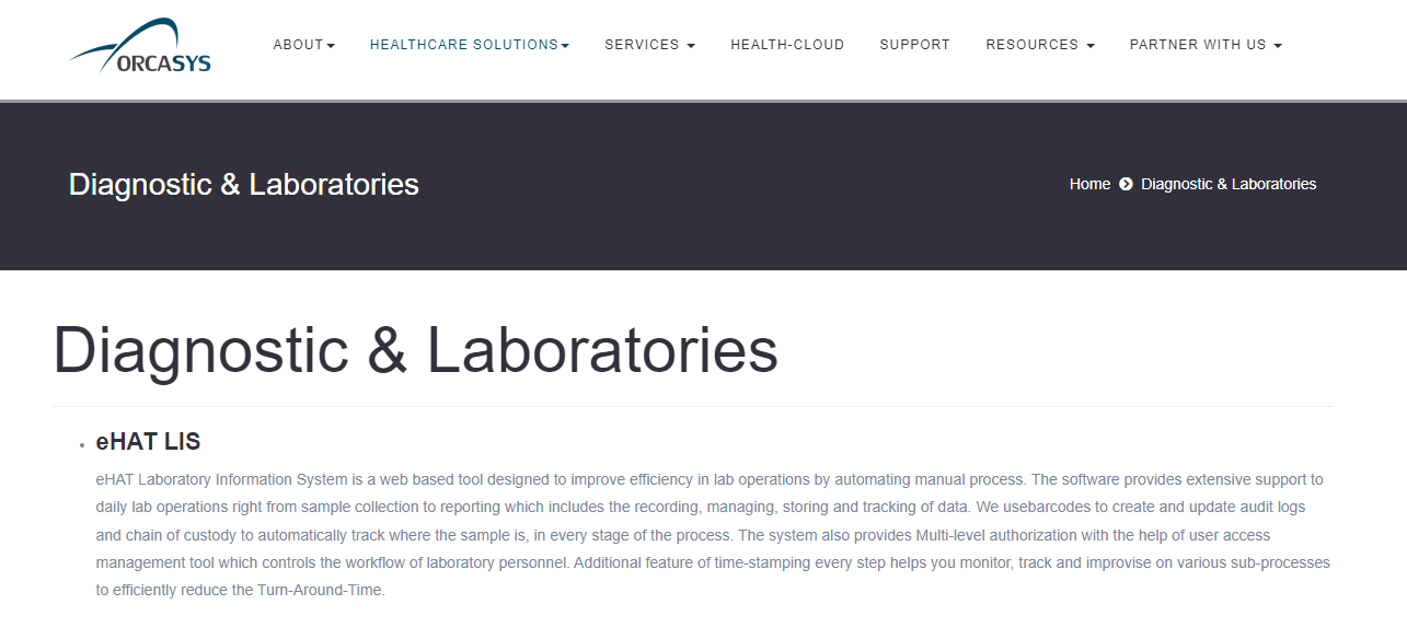Electronic- Healthcare Administrative tool is a web-based, platform-independent, scalable and fully loaded hospital Information system developed using open source technology. eHAT comprises of 40 different modules to streamline the workflow of administrative, operational, revenue and clinical departments of a hospital. E-Hat Enterprise is fully loaded Hospital Management Information system with a one-stop solution specific to Large multi, super specialty and enterprise hospitals. eHAT Laboratory Information System is a web-based tool designed to improve efficiency in lab operations by automating manual processes. The software provides extensive support to daily lab operations right from sample collection to reporting which includes the recording, managing, storing and tracking of data. We use barcodes to create and update audit logs and chain of custody to automatically track where the sample is, in every stage of the process.