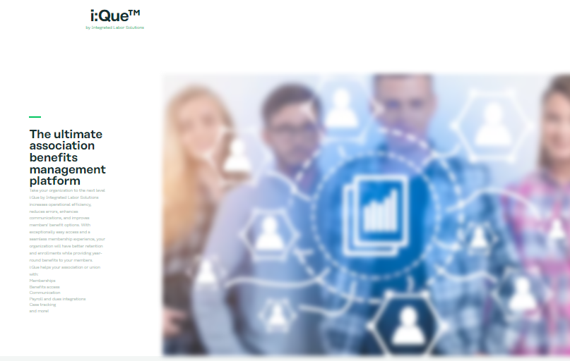 i:Que helps you meet the demands of association/union membership management, benefits, case tracking, payroll transactions and communication tasks with a flexible, highly secure cloud-based software system. Our easy-to-use integrated platform streamlines your workload – reducing paperwork and saving you time and money.